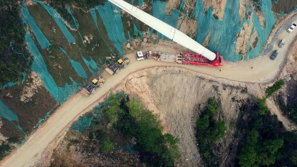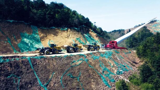这些特质使其在风电大件牵引中表现尤为出色。三江红岩山风电项目负责人高度肯定:“山推L76-G牵引性能卓越,爬坡能力超群。其效率远超传统设备,两台可抵五台5吨级装载机,大幅节省了人力和燃料成本。选择山推L76-G,是我们项目上的明智战略决策。”