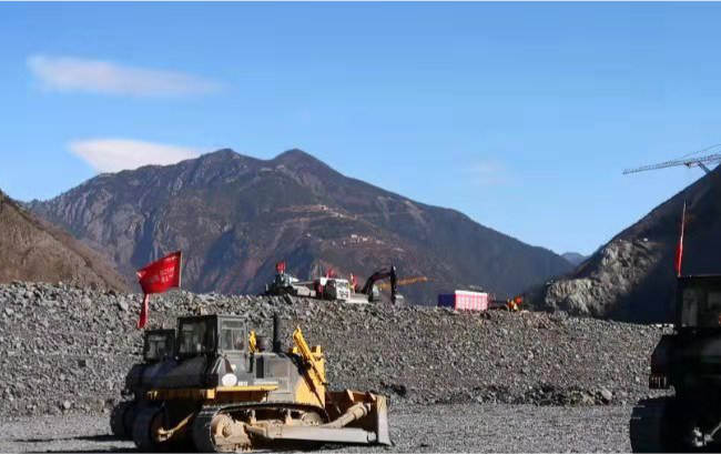 SD32挖掘机展开大西南区县水电安装站坝体制作,挖掘机将土、石料等干硬原辅料展开時间囤积,平地机压平,注射成型防尘网土转变成坝体。