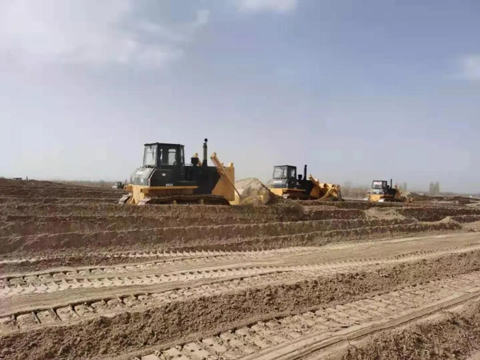 ও      项目施工方考虑到沙漠恶劣的施工环境,经过多方比较,最终选择山推推土机、装载机、平地机一体化产品机群作为项目施工的“主力军”,承担治沙平整土地、土方施工作业。山推也不辱使命,凭借出众的施工效率、稳定的产品性能、及时的售后服务保障,确保项目进度顺利进行。