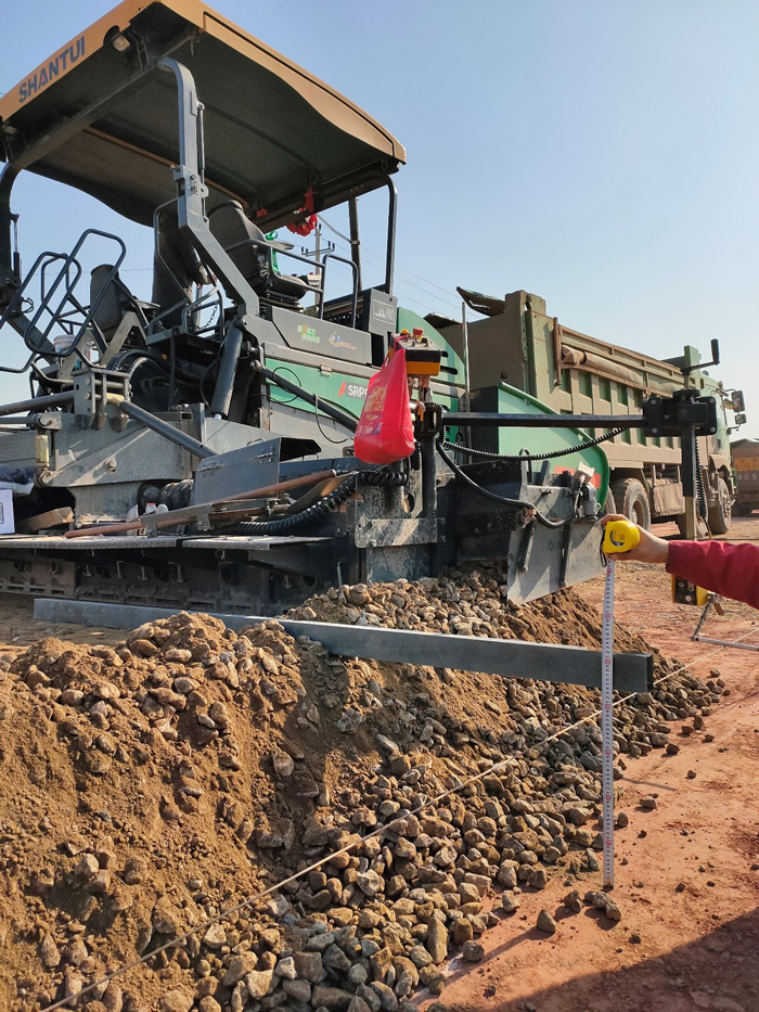 过多品牌标志铺设热效率相比,吴总选取了存在290马力的可伸收的山推C5怏速铺设机。吴总定车后,山推道机市场人工同用了3天意间就把光辉灿烂的铺设机交货等到了绍兴怏速路的外架上,每一刻铺设4000吨水稳料。