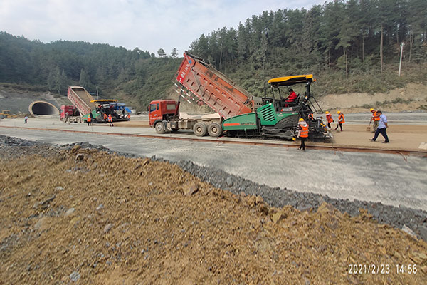SRP09-C5 MA摊铺机双机联铺助力贵州某高速道路建设