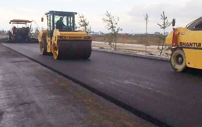 山推成套道路设备在西北地区施工