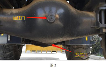 🍌6、     工作完成后,将车辆停平稳,拉紧手制动,将前后桥的放油塞(图2)堵拆下,放出桥包里的油液,用备用桶收集并妥善处理。将塞堵清理干净。
