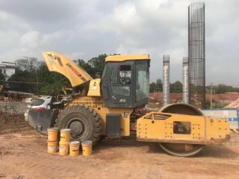 1、将压路机停靠到水平路面上(图1),便于发动机机油排放彻底;